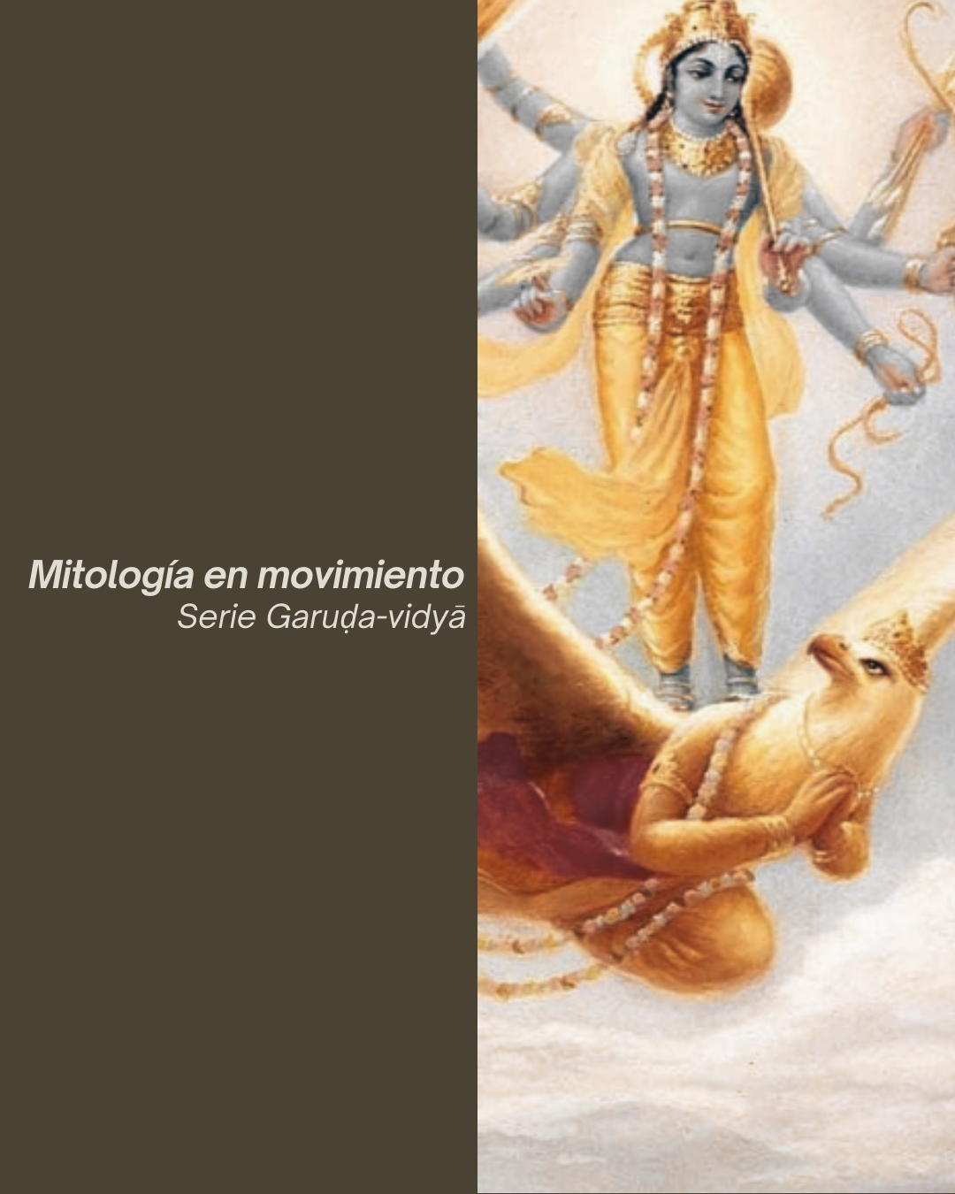 A lo largo de cuatro clases teórico-prácticas abordaremos los episodios centrales de su relato: el nacimiento y el resplandor excesivo que debe aprender a regular; la obtención del amṛta como gesto de liberación para su madre Vinatā; y el encuentro con Vishnu, momento en el que toma la elección soberana de aliarse y de aceptar convertirse en su vāhana.